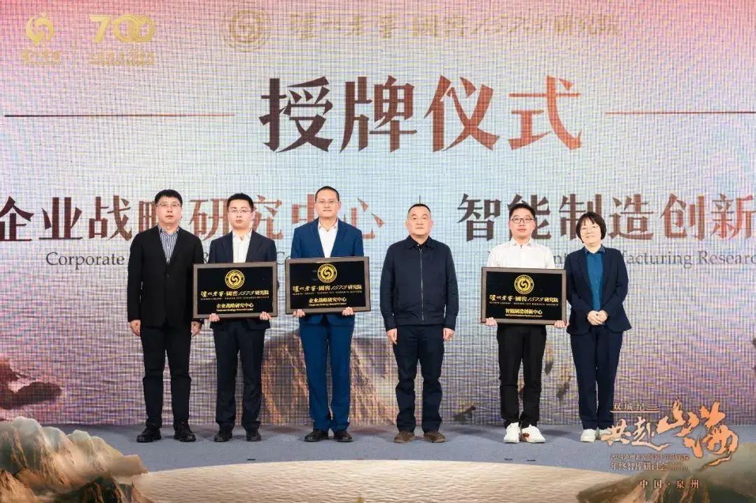 现场,刘淼董事长文书泸州老窖·国窖1573商酌院新建树企业政策商酌中心、智能制造鼎新中心,并与任中榕、赵丙坤共同为新成立中心代表授牌。泸州老窖·国窖1573商酌院企业政策商酌中心和智能制造鼎新中心代表登台经受授牌,共同见证商酌院组织架构迎来全新升级。